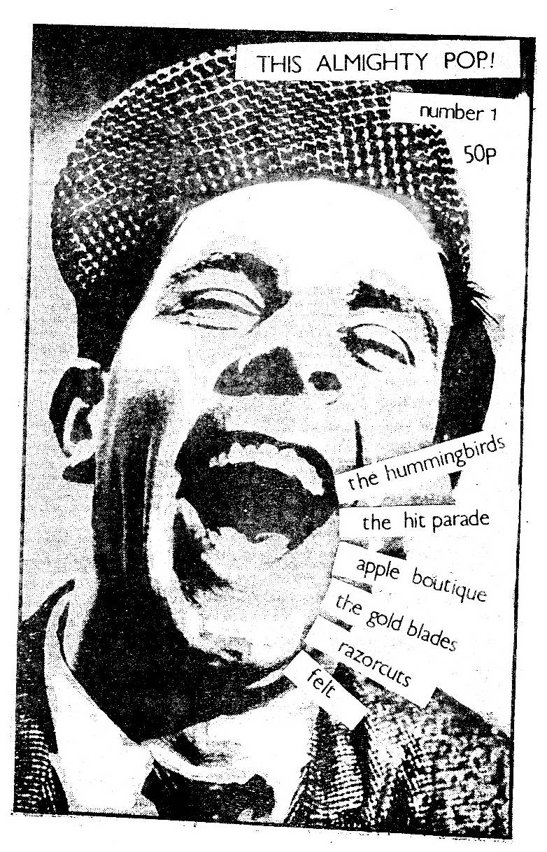 This Almighty Pop Issue 001 The Hummingbirds, The Hit Parade, Apple Boutique, The Gold Blades, Razorcuts, Felt, and more.